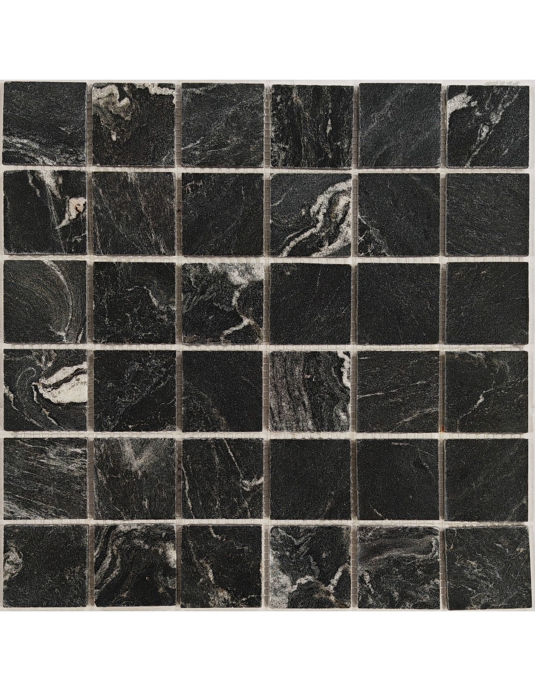 Мозаика из натурального мрамора, поверхность полированная.