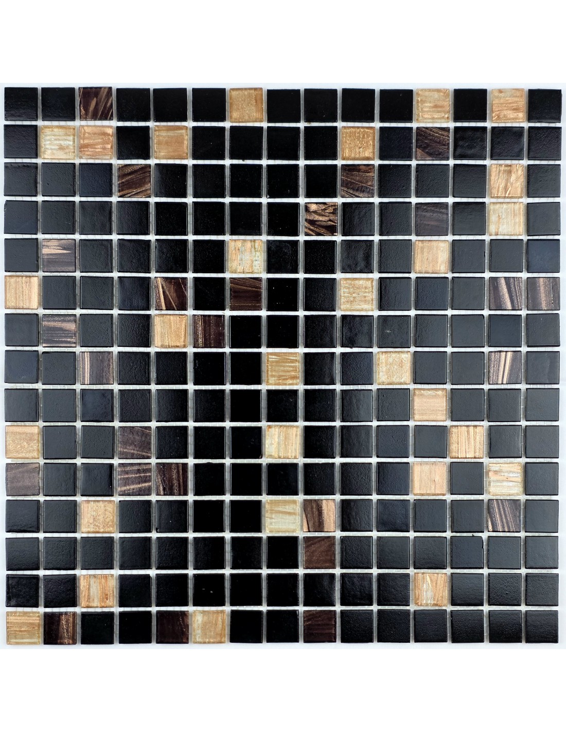 Смальтированная стеклянная мозаика с авантюрином, поверхность глянцевая. Размер чипа 20*20 мм.