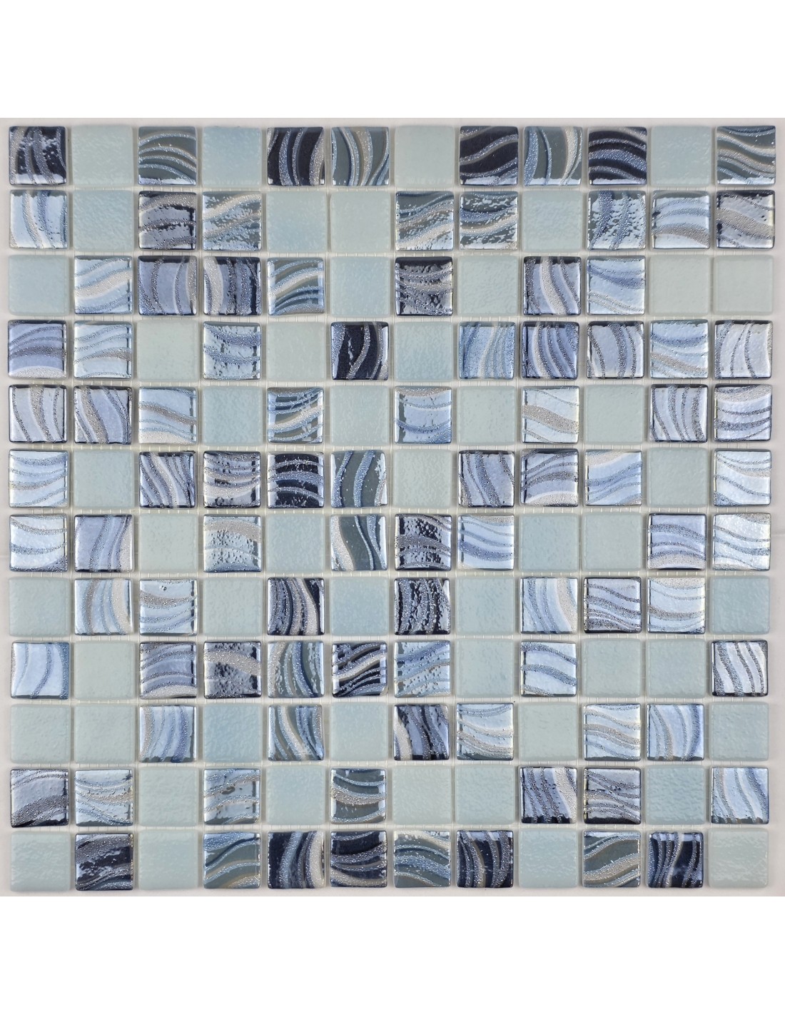 Стеклянная мозаика с верхним напылением цвета, поверхность глянцевая, перламутровая. Производство Испания.
